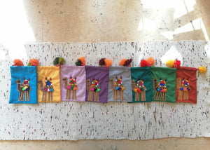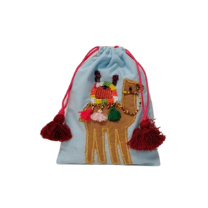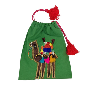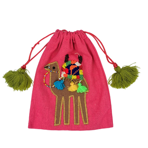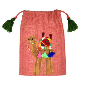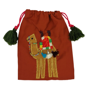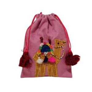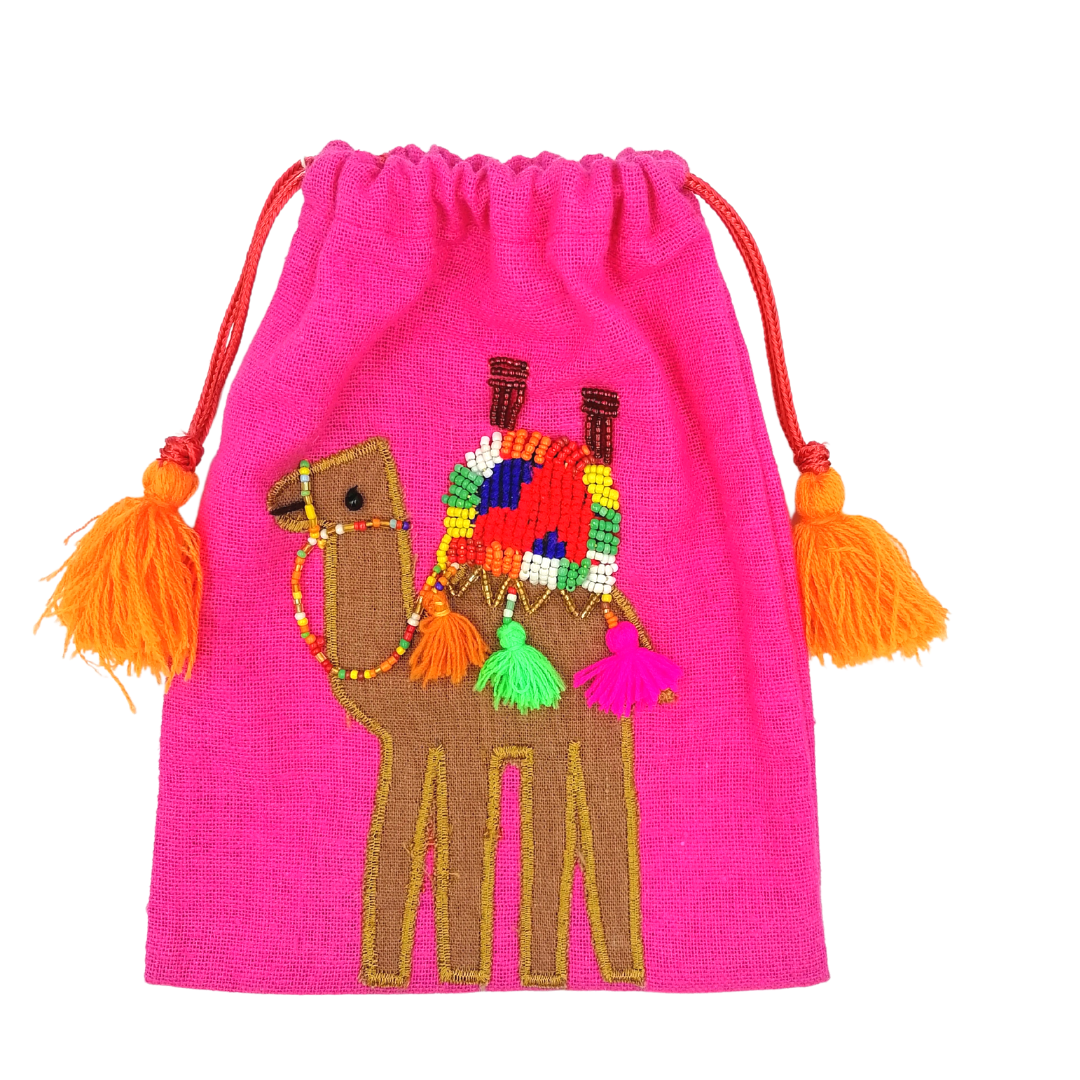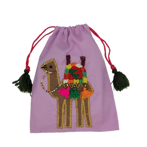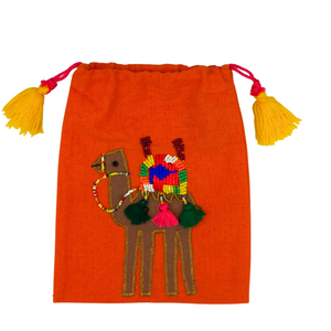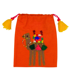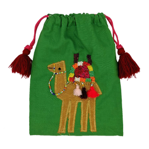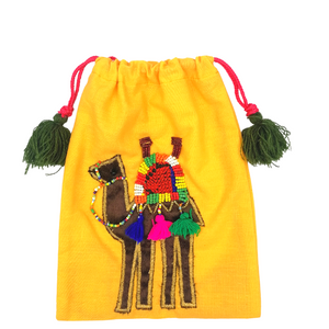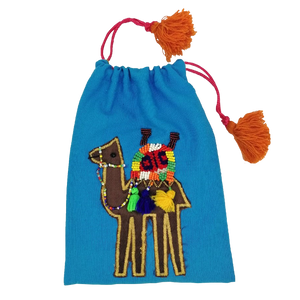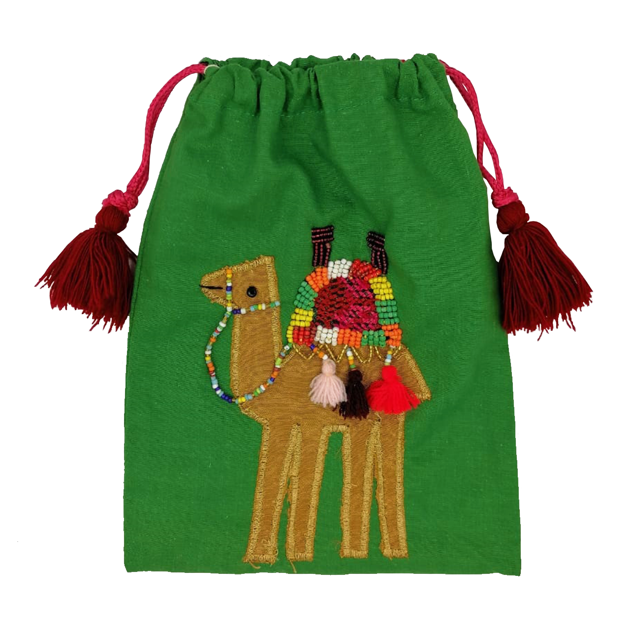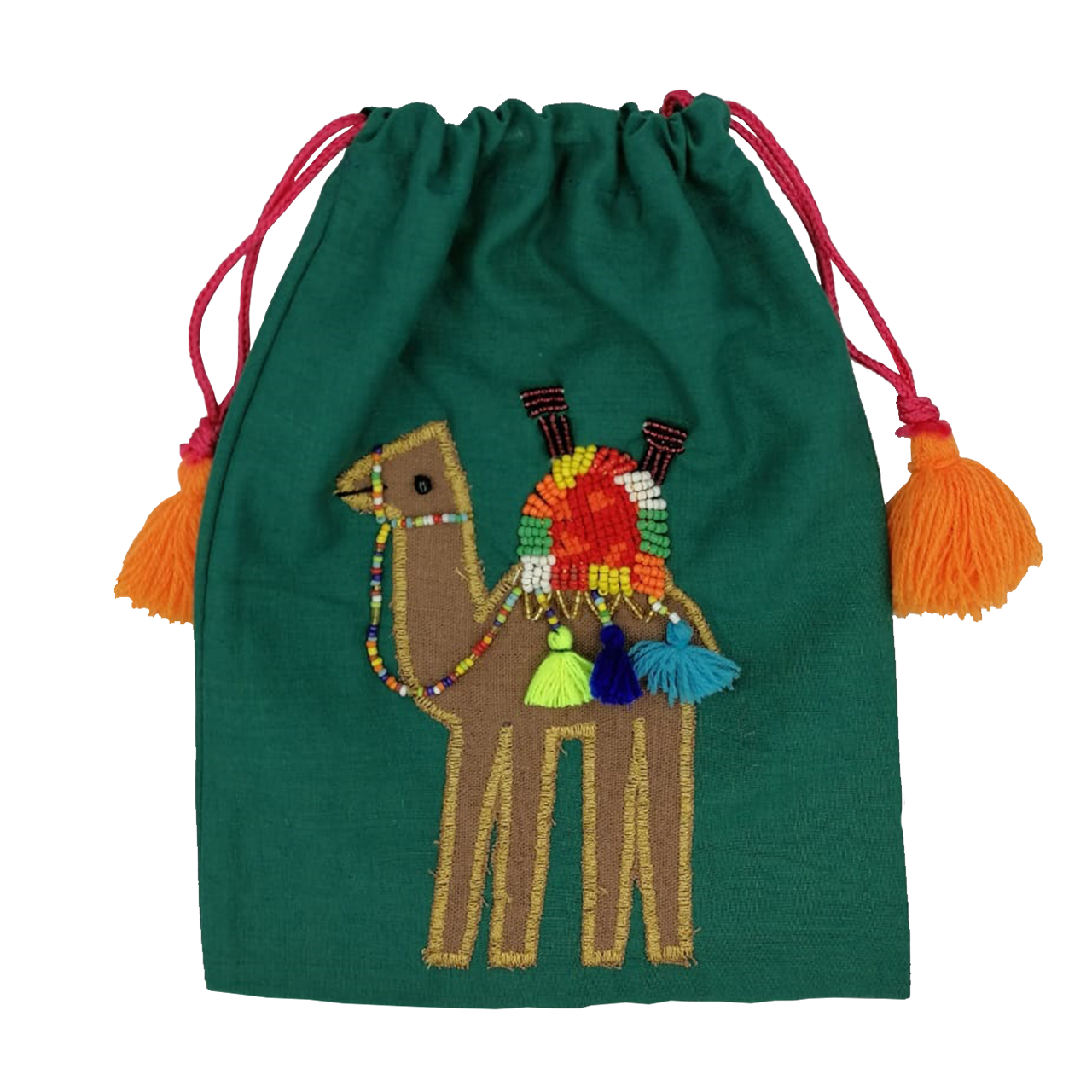 A pouch with hand embroidery from North Sinai, Tassels from Aswan, and Egyptian fabric. Comes with a long strap.