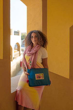 Hand embroidered laptop sleeve on genuine Egyptian leather, tassel from Aswan