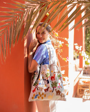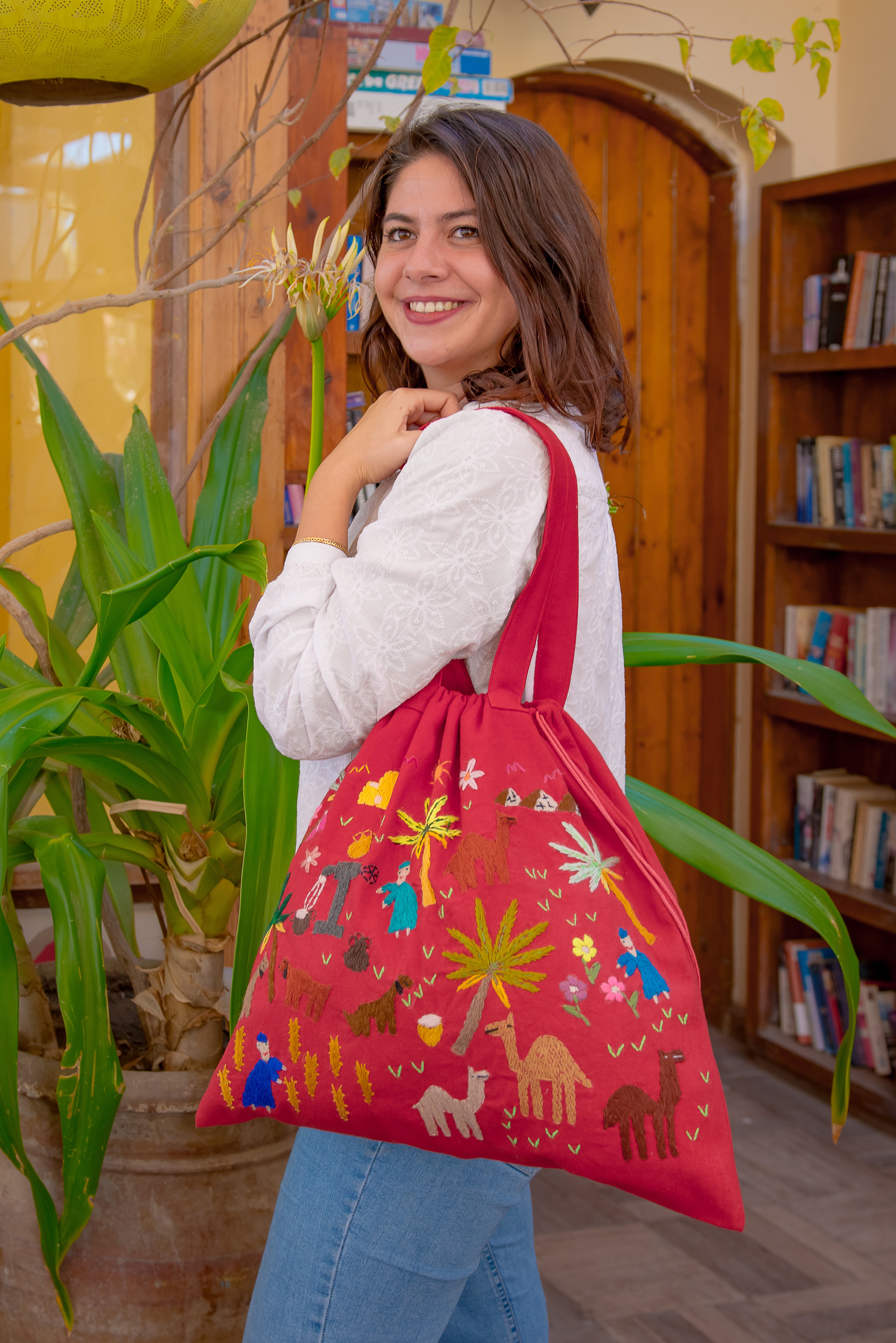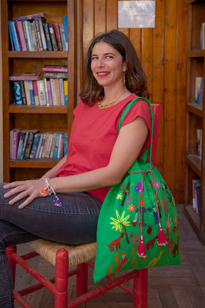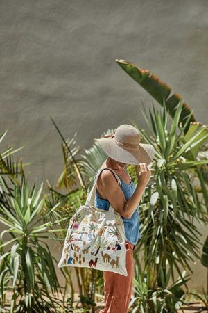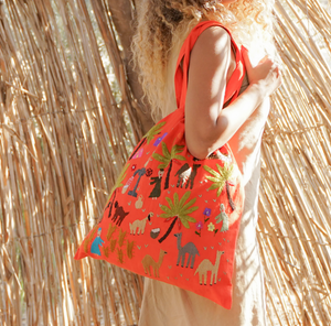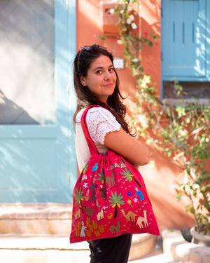 Be unique and environmentally conscious! Replace plastic bags with this hand embroidered Fabric Tote made from 100% Egyptian cotton.
