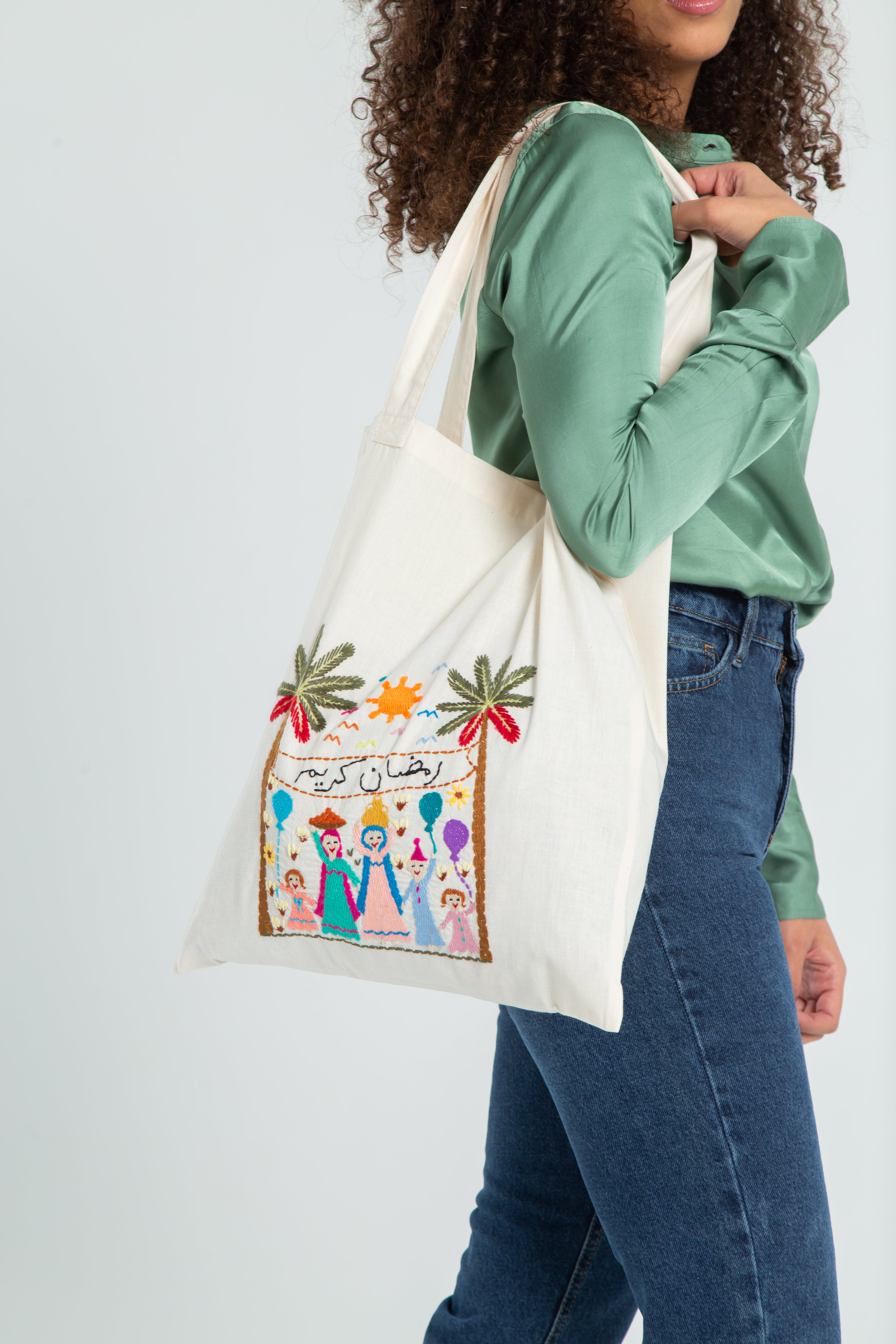 Replace plastic bags with this hand embroidered Fabric Tote made from 100% Egyptian cotton.