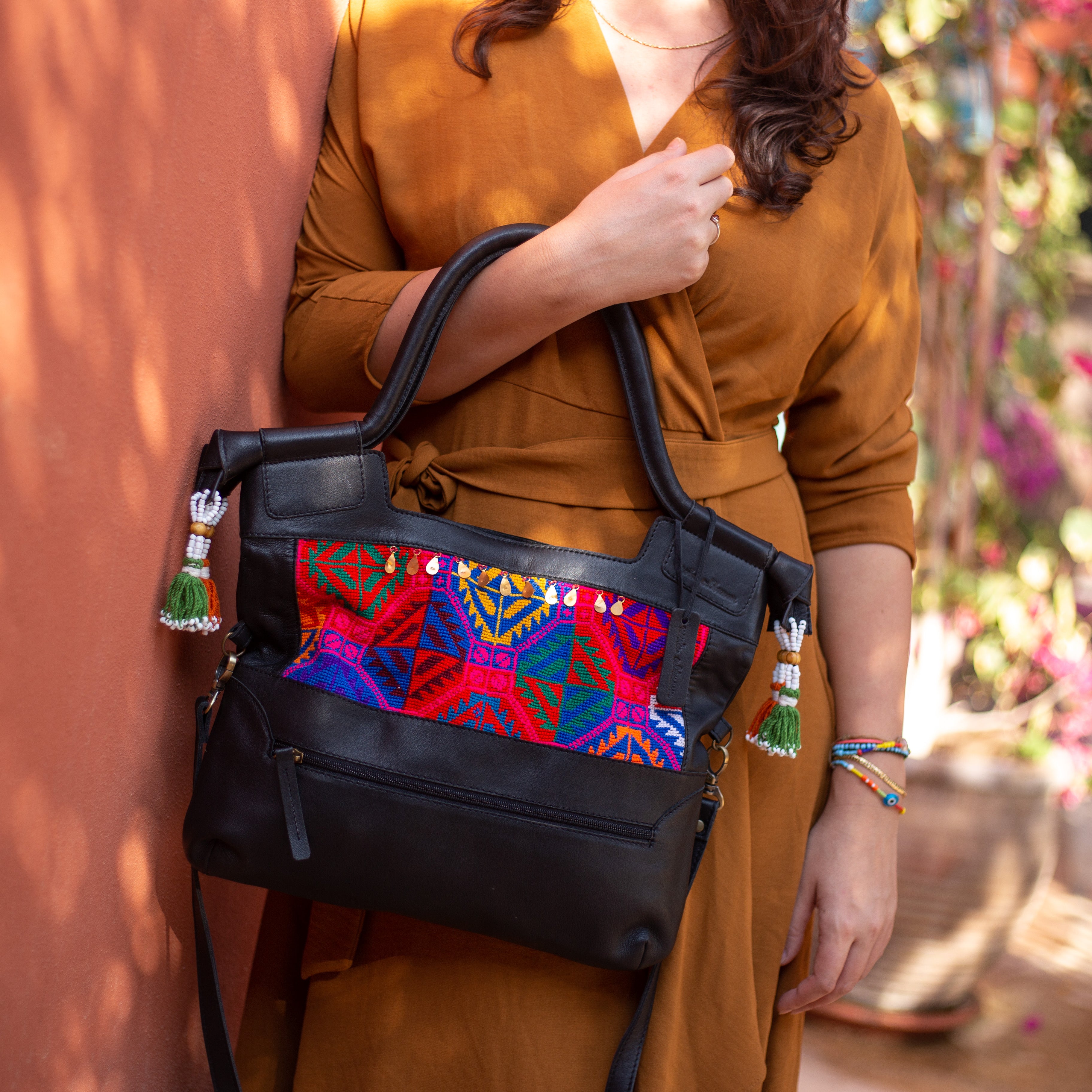 Traditional Hand Embroidery, hand embroidered by Egyptian women in Sinai on the genuine leather Vintage Bag.