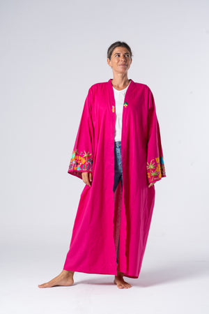 Kaftan with Fellahy embroidery depicting nature from the Egyptian countryside.