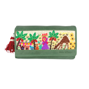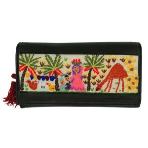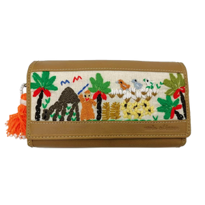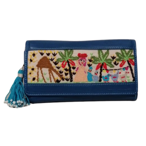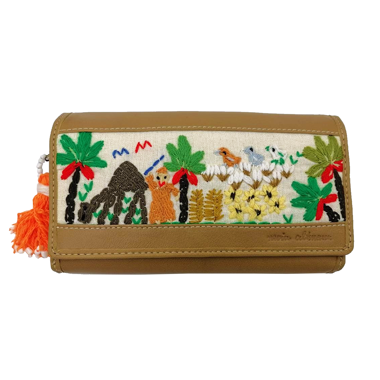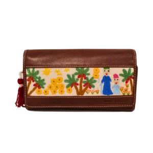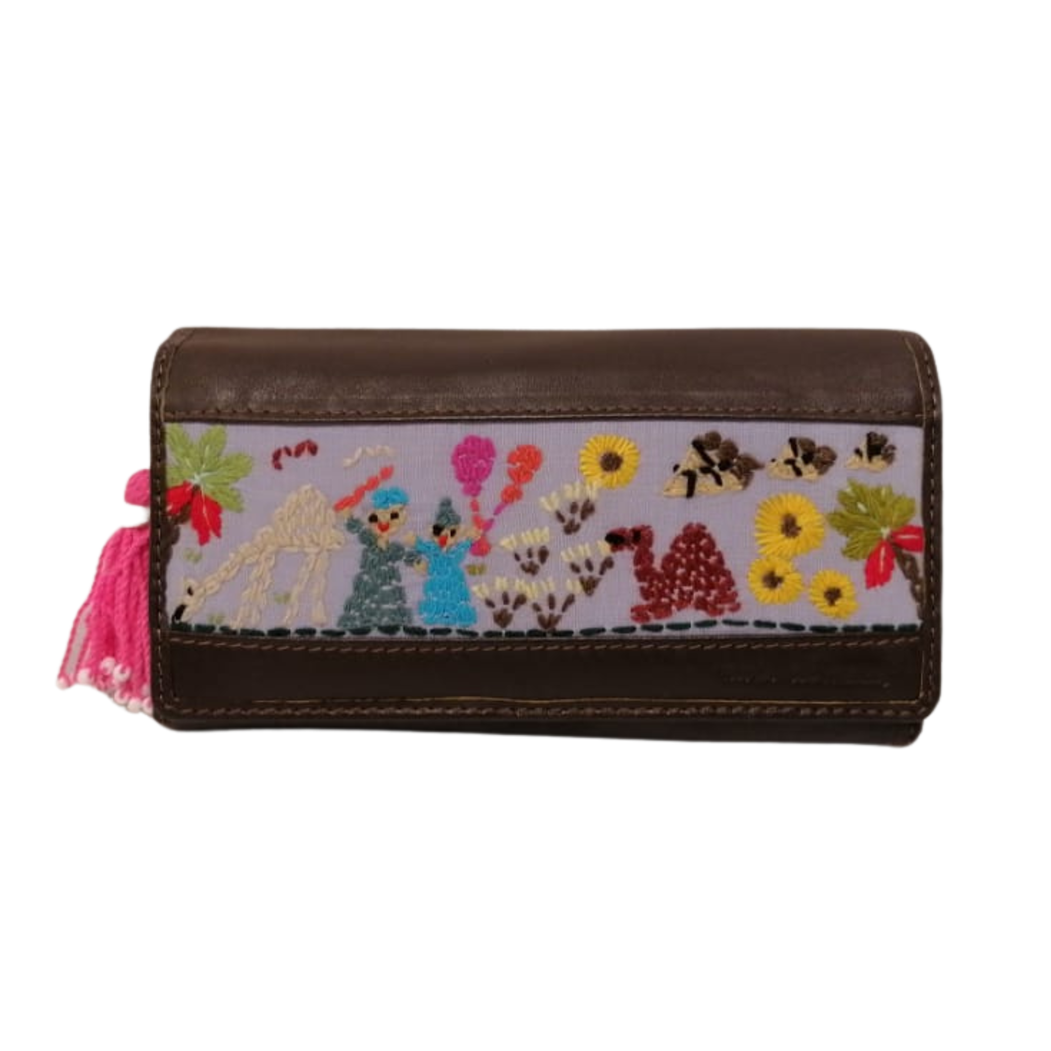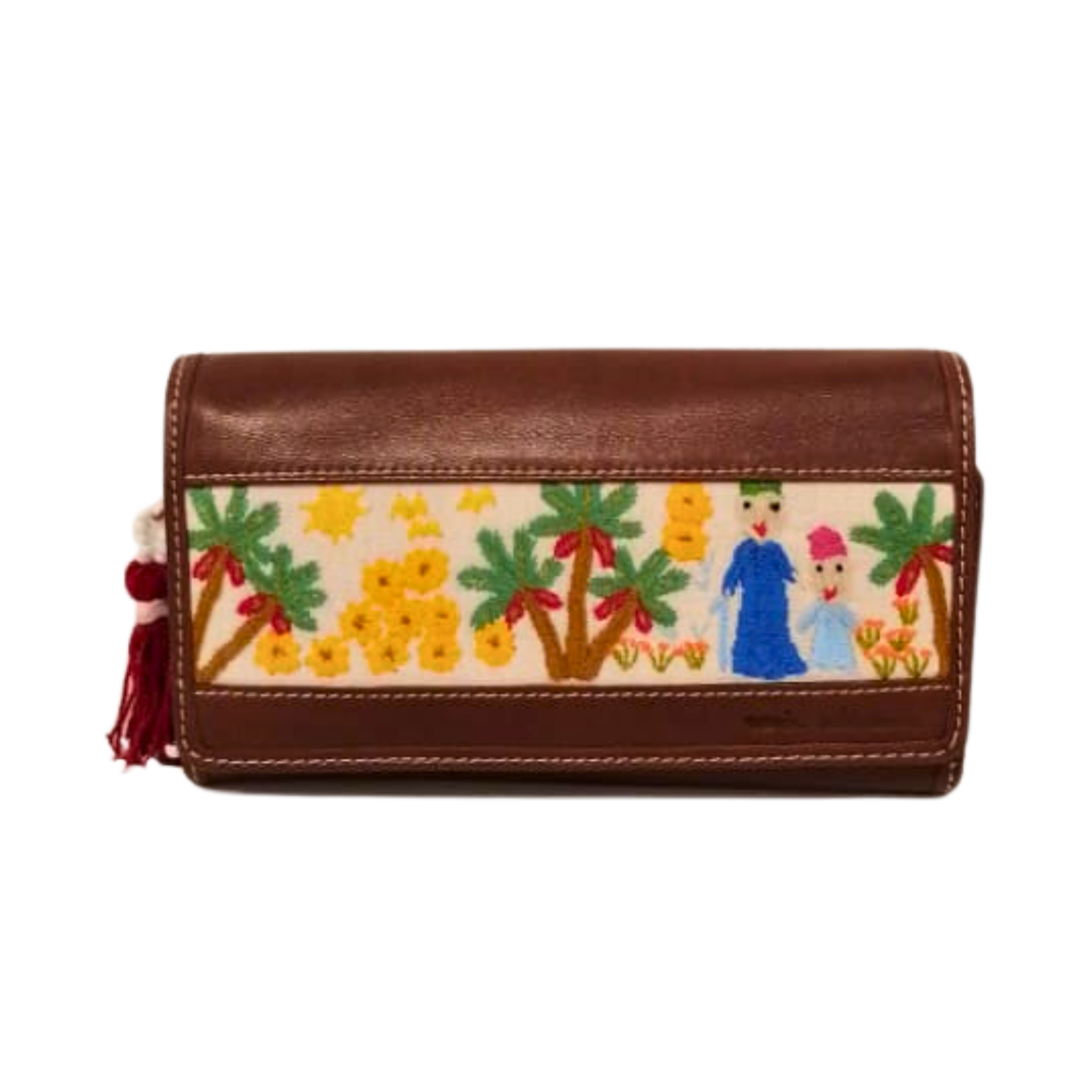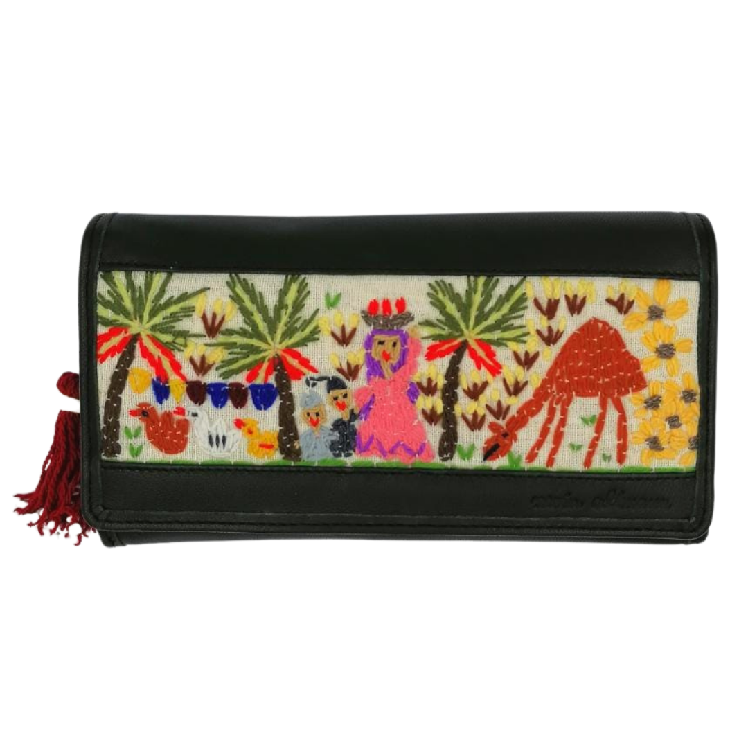 It features Contemporary Egyptian hand embroidery on one side. This design is hand-drawn by Nevin and was inspired by daily life in the Egyptian countryside.
