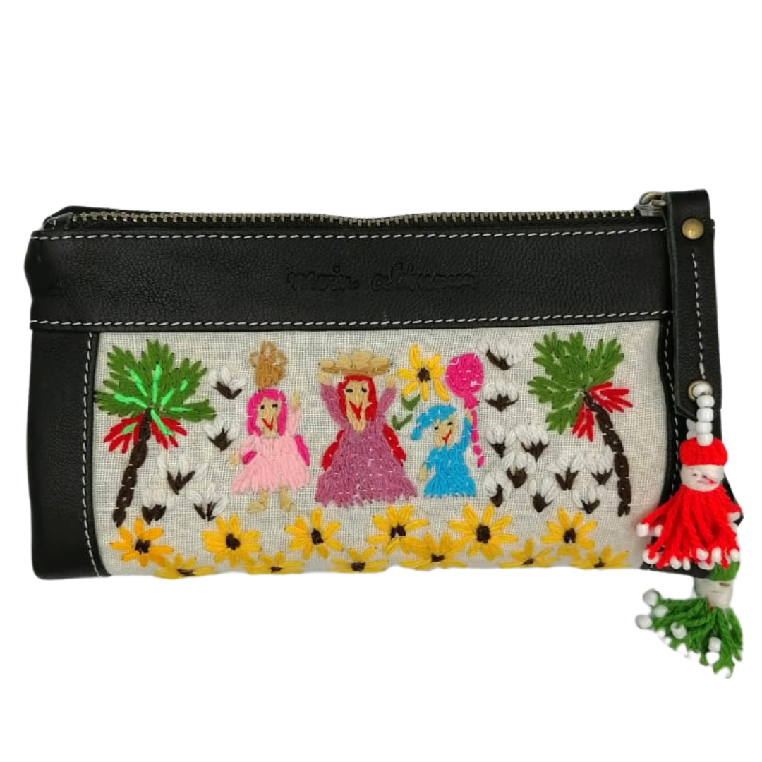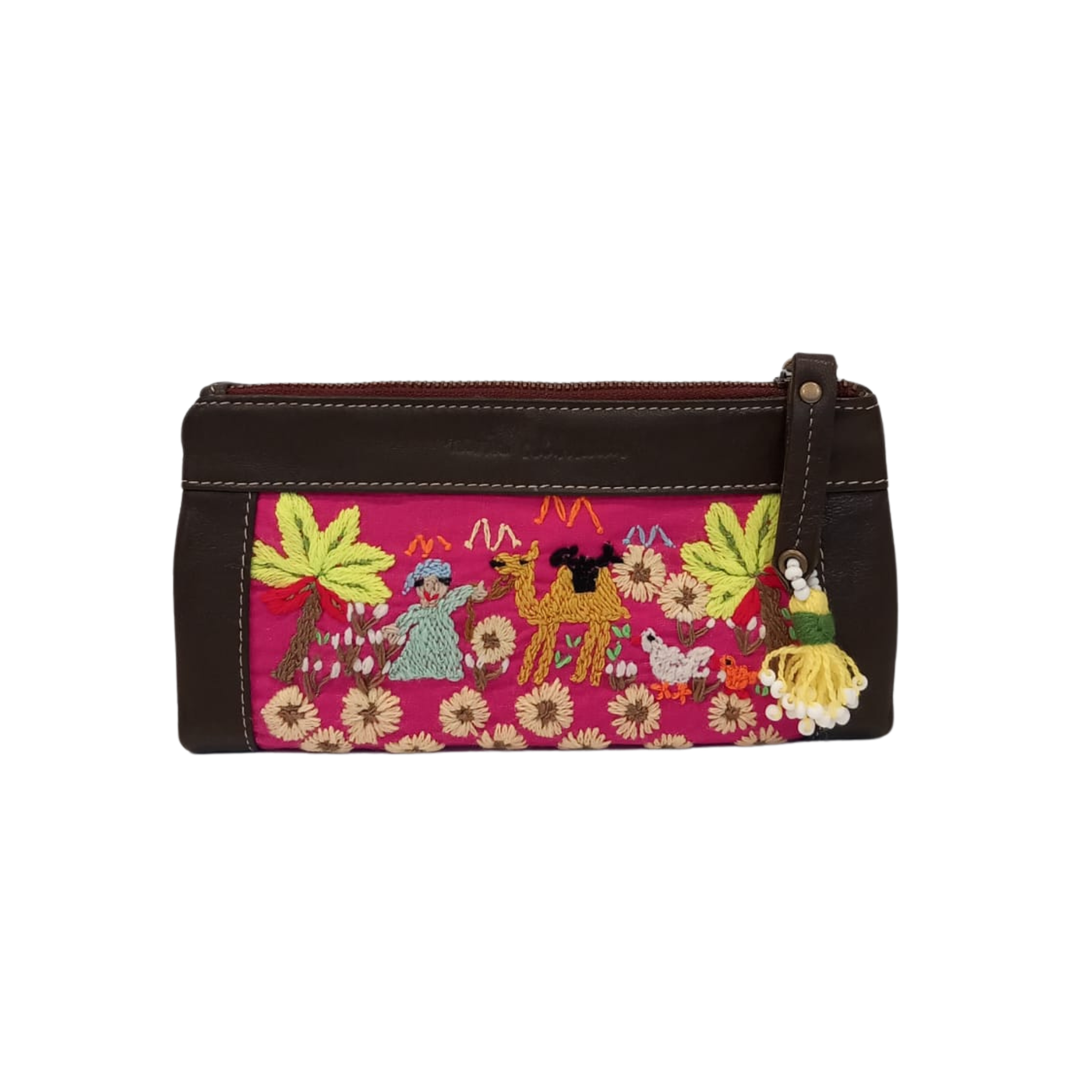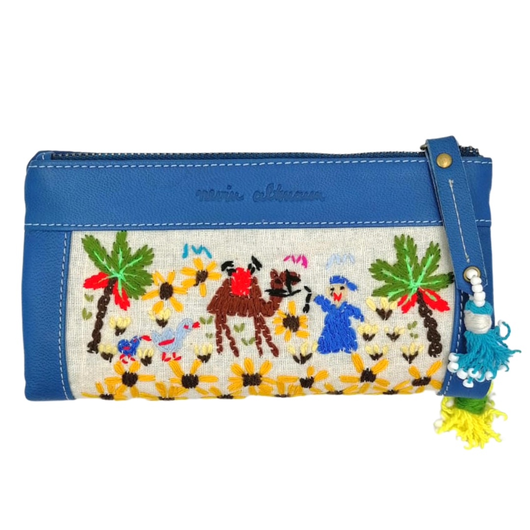 A very practical wallet with compartments and pockets for all of your needs. It features contemporary Egyptian hand embroidery and Tassels from Aswan.