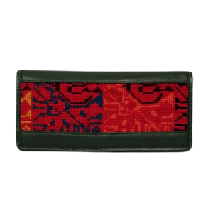 A practical and beautiful piece. It has pockets, a zipper, and space for all your cards.