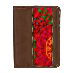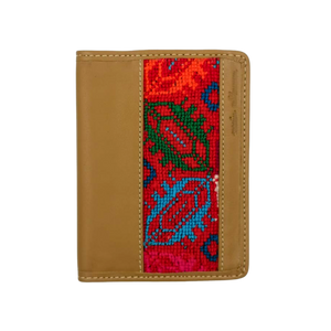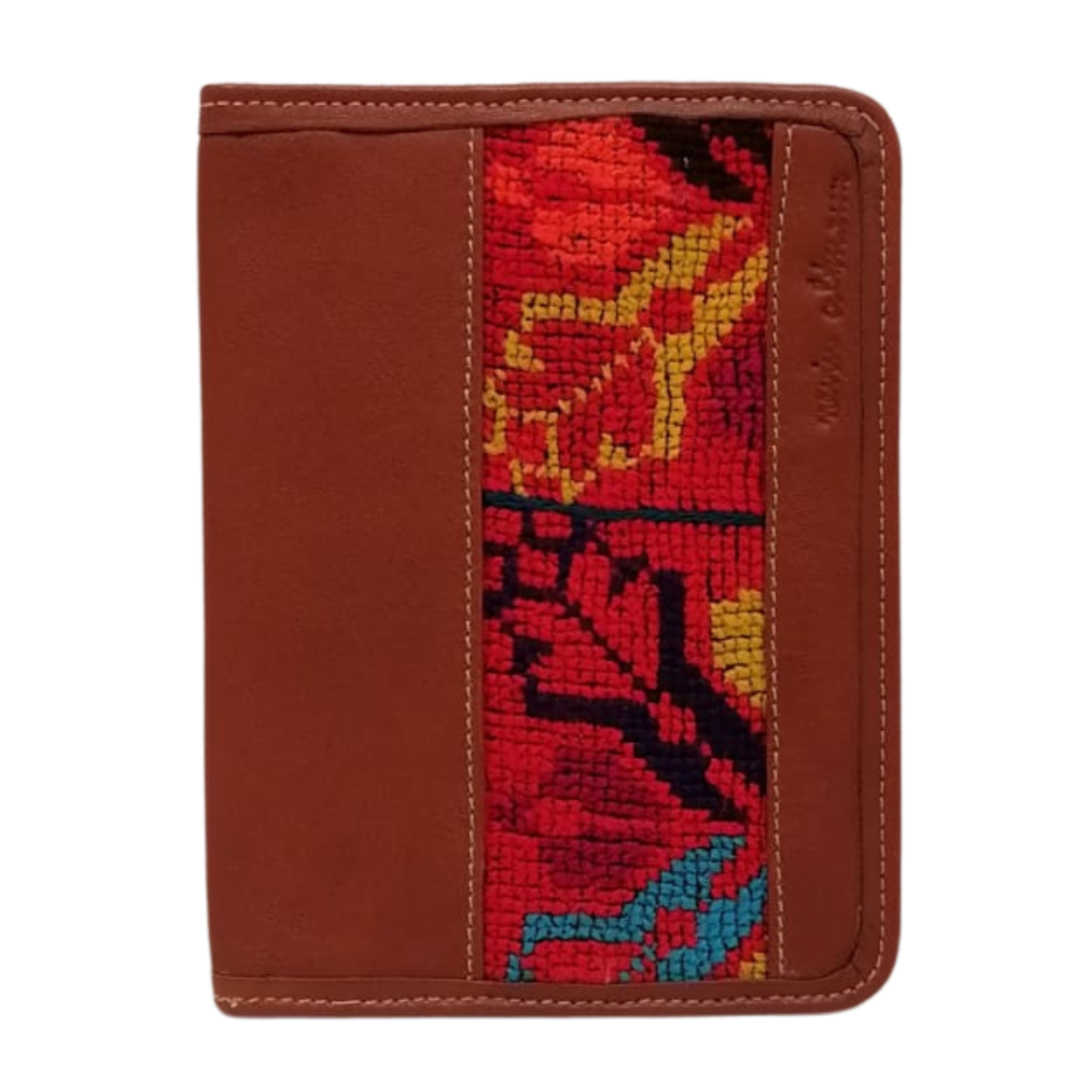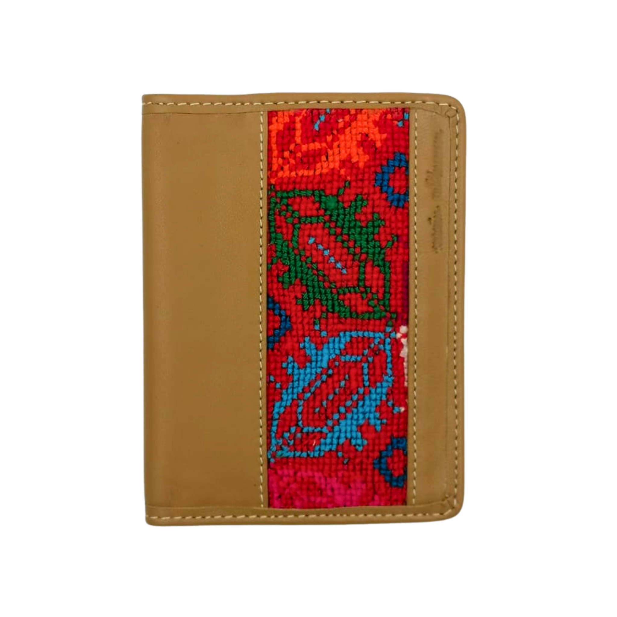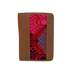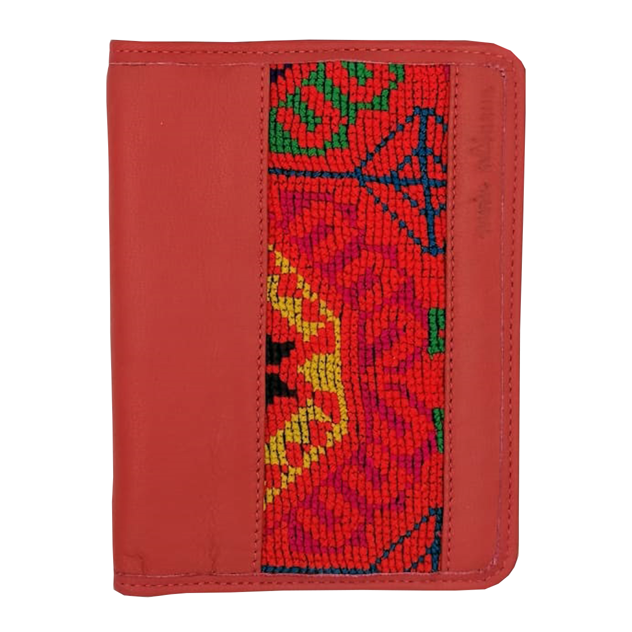 Genuine Leather Passport Holder with Egyptian hand embroidery from Sinai. This hand embroidery is the traditional bedouin cross stitch that has been used by the nomadic tribes in Egypt and across the Levant for generations.