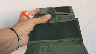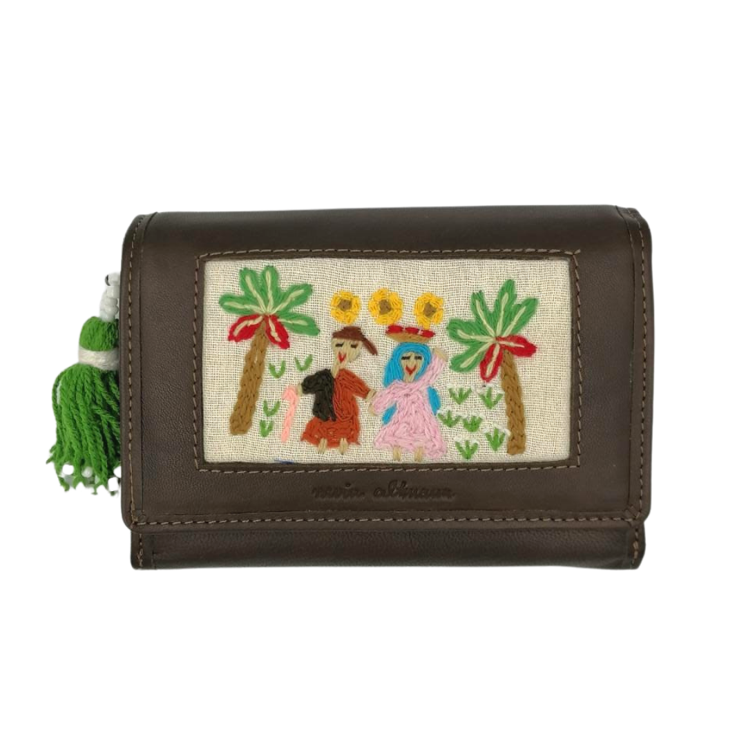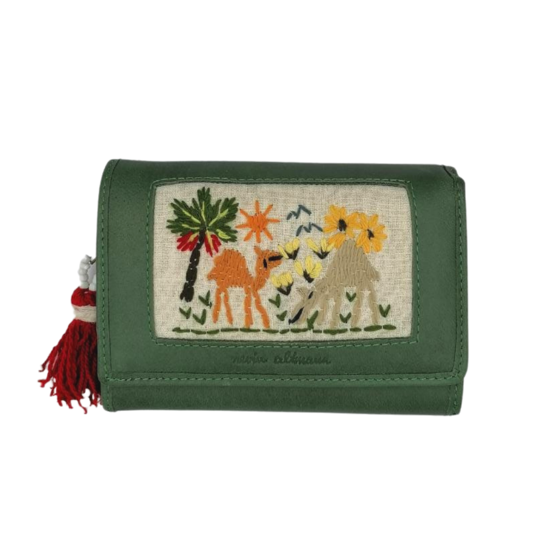 The Plumpy Wallet will fulfill your expectations of the dream wallet! It features contemporary and traditional Egyptian hand embroidery with the Fellahy design on the front of the wallet and Sinai Embroidery on the back.