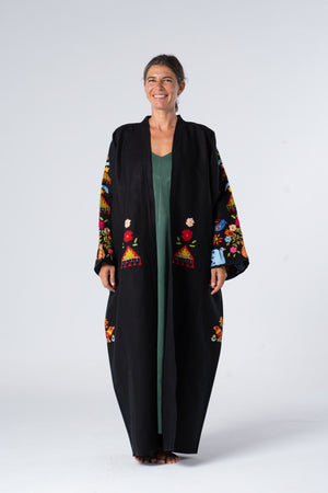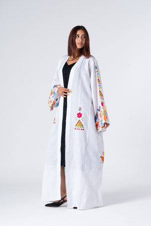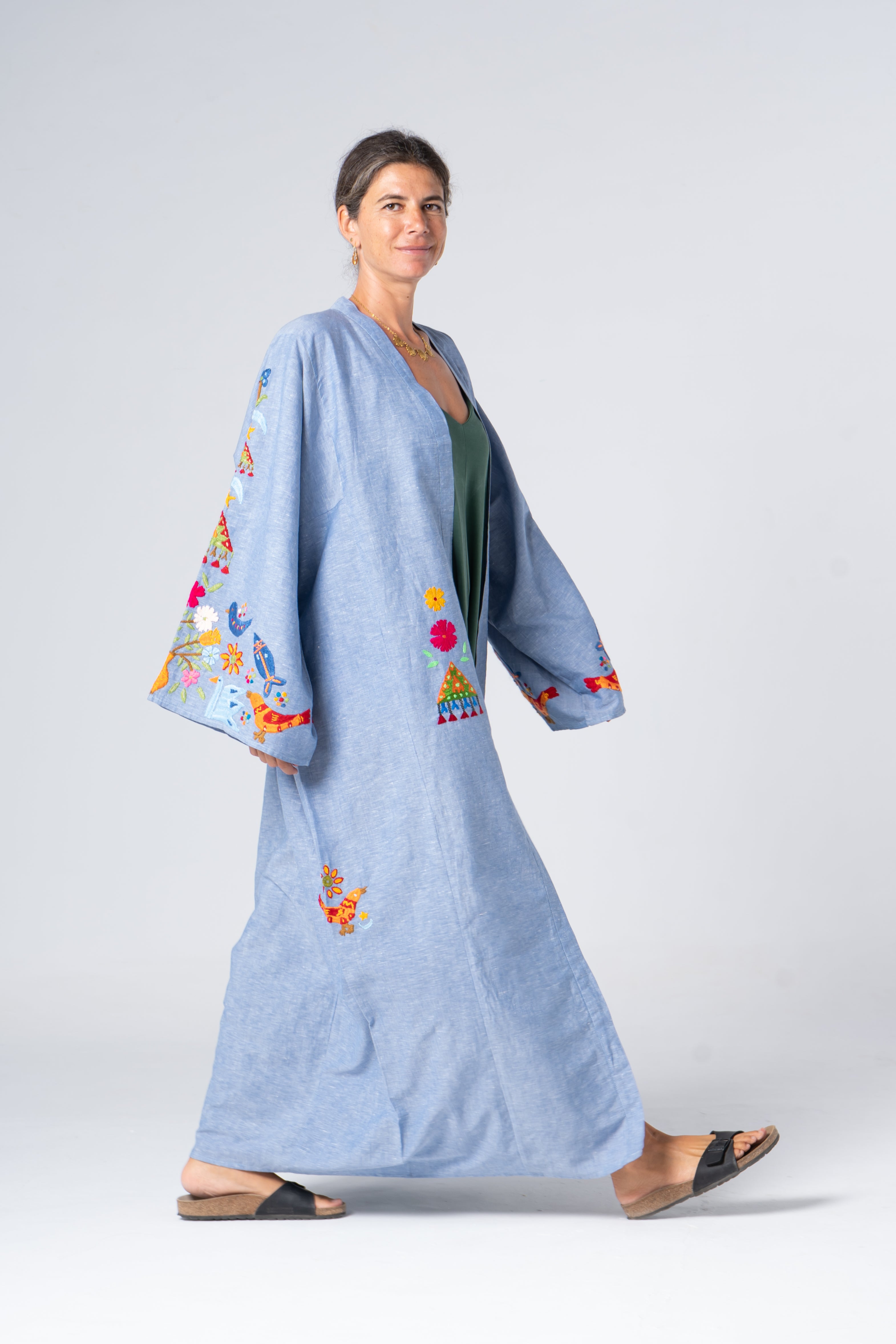Kaftan featuring our unique contemporary Asfoora hand embroidery design on Linen.