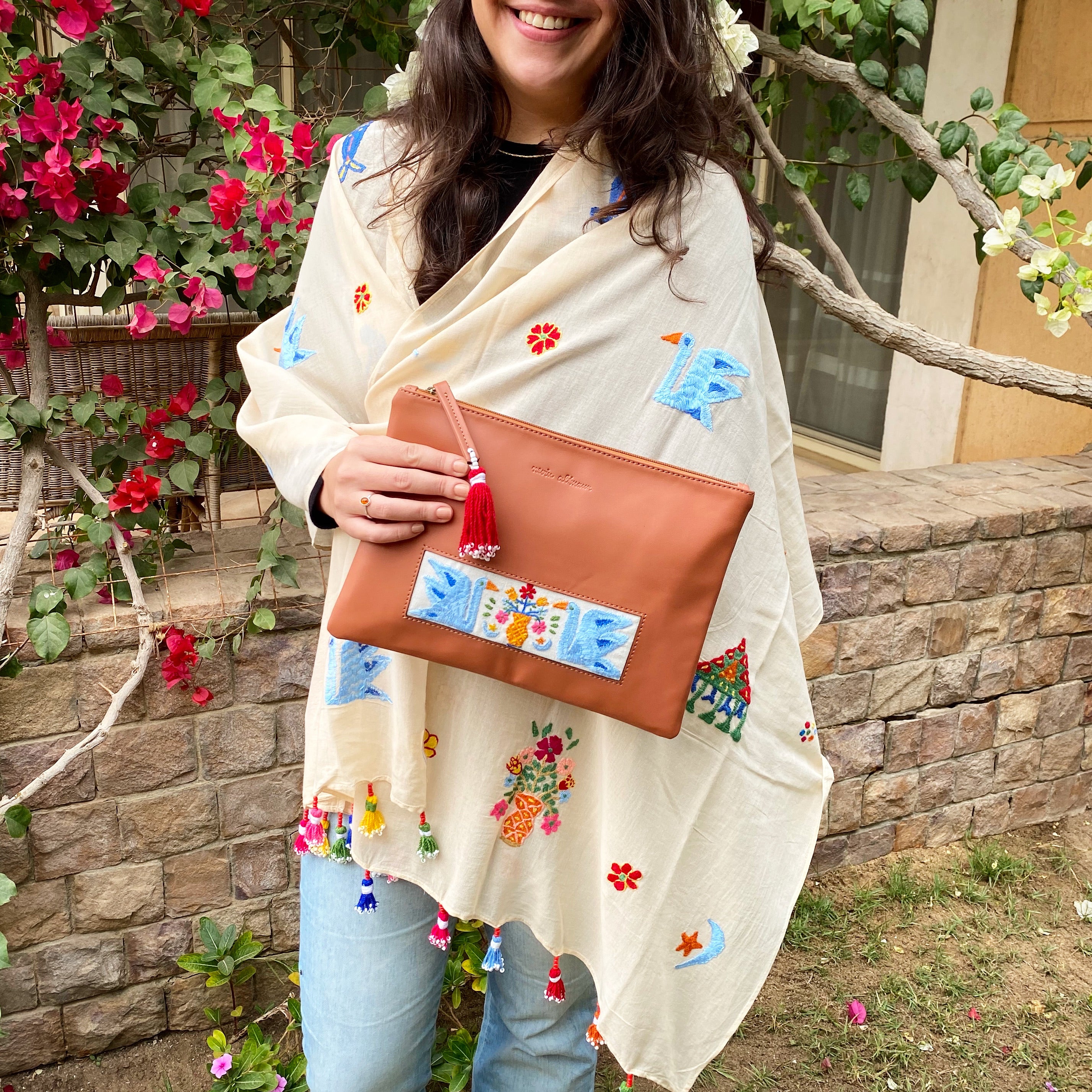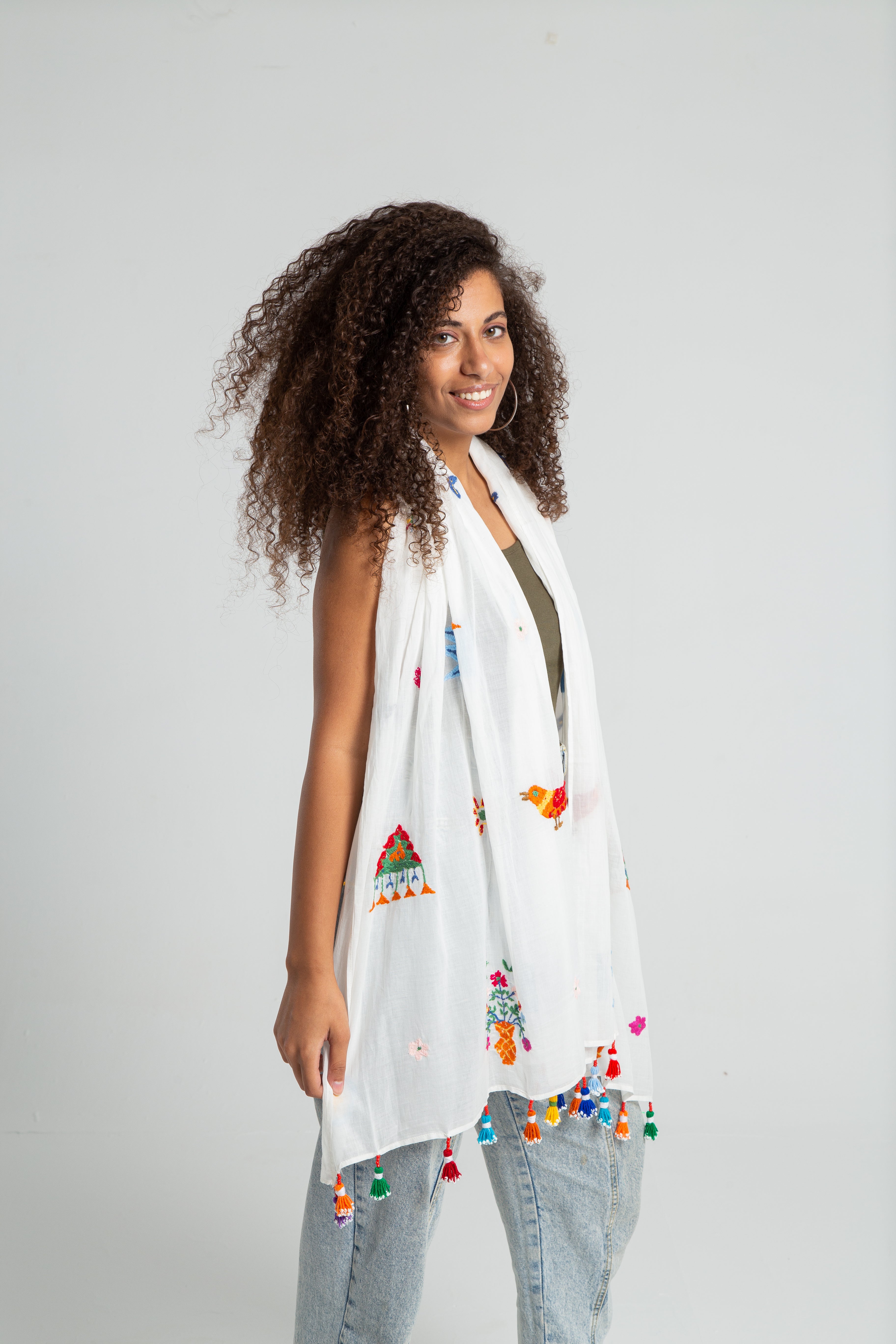 Hand made Asfoora Embroidery on Egyptian Cotton, Tassels from Aswan