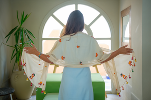 Nevin, inspired by the various embroideries of Egypt, created this experimental contemporary design. This unique piece was made by Egyptian women in Cairo and it will make you feel the love and care that was put into creating it.