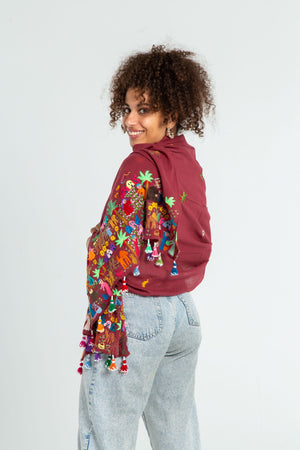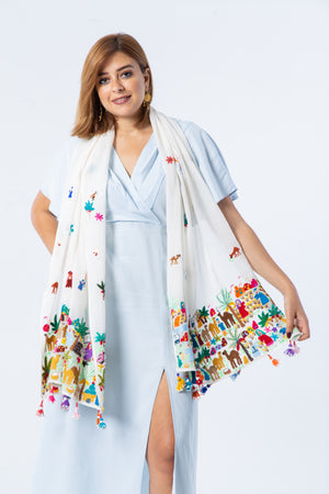 The Special Jailan Shawl is an elegant Fellahy shawl with dense embroidery at both ends that tells stories about the Egyptian countryside in the Nile Delta. Wrap yourself in elegance, culture and tradition.